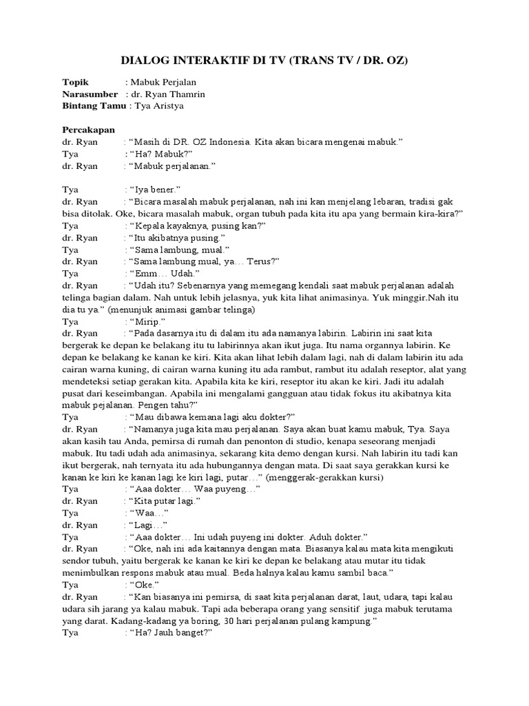 Pada berbagai macam saluran acara tv yang ada di Indonesia dialog interaktif sangat sering ditayangkan pada acara berita baik itu berita pagi berita siang maupun berita petang. Related Posts To Contoh Dialog Interaktif Tv One Terbaru Contoh Dialog Interaktif Tv One Terbaru 2017-12-28T1832000700 Rating. 21 Contoh Teks Dialog Interaktif 2020.