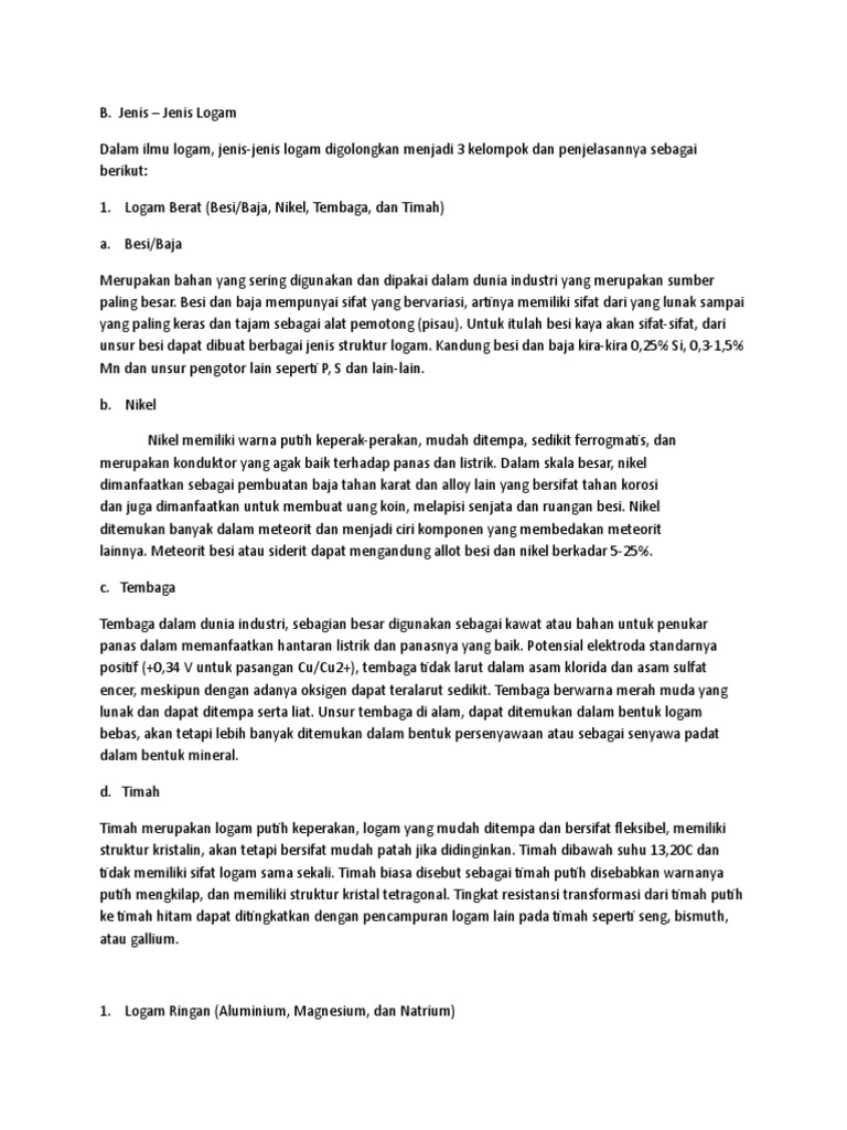 Yang memiliki potensial listrik -004 volt yang dilapisi dengan logam seng yang memiliki potensial listrik -00762 volt. Timah tergolong logam yang tahan karat. Dalam keadaan murni nikel bersifat lembek tetapi jika dipadukan dengan besi krom dan logam lainnya dapat membentuk baja tahan karat yang keras.