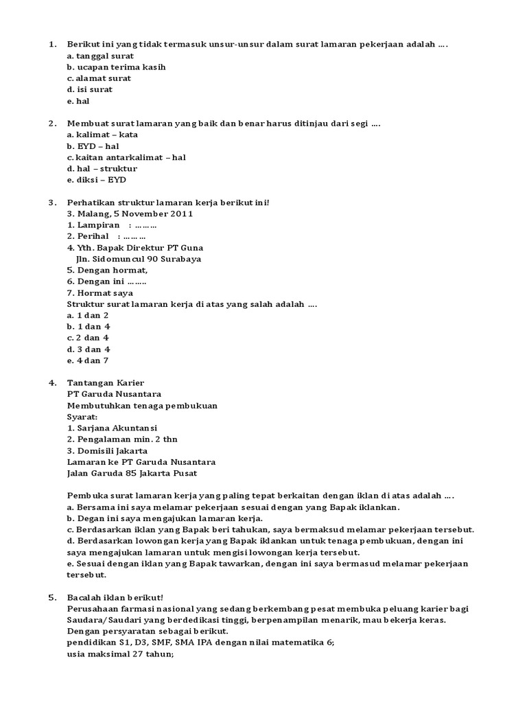 Contoh Soal Unsur Unsur Surat Lamaran Pekerjaan