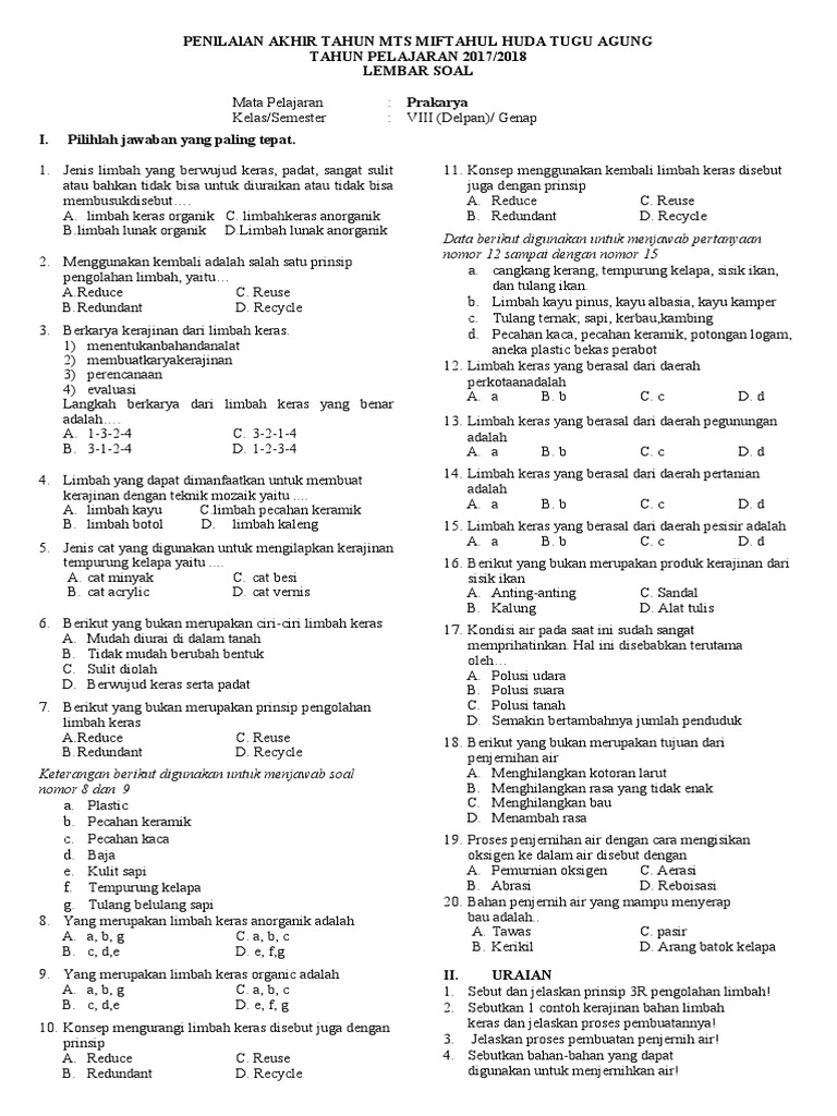Soal Pat Prakarya Kelas 8 Smp Psm Pacet Bandung Facebook