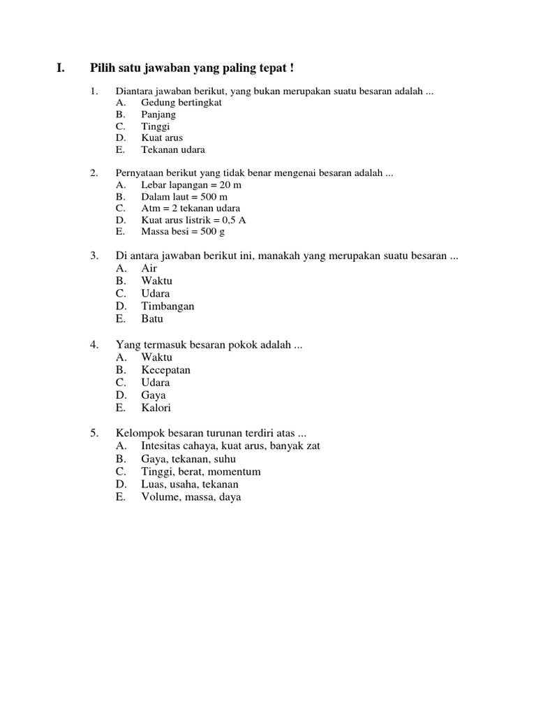Besaran Pokok Dan Besaran Turunan Docx Document