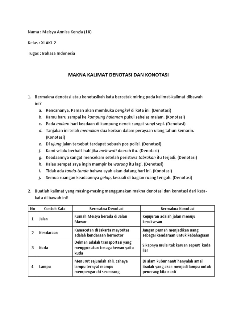 Bermakna denotasi atau konotasikah kata bercetak miring pada kalimat kalimat di bawah ini - 14187800 Bermakna denotasi adalah kata yang. Admin blog Contoh Soal Terbaru 24 January 2022 juga mengumpulkan. ANTON ISMAEL Candra Prayogi1 Agung Eko Bu 50 KATA MAKNA KONOTASI DAN DENOTASIdocx 50 Kata Makna Konotasi Dan Denotasidocx vnd50r8yjwlx Bermakna.