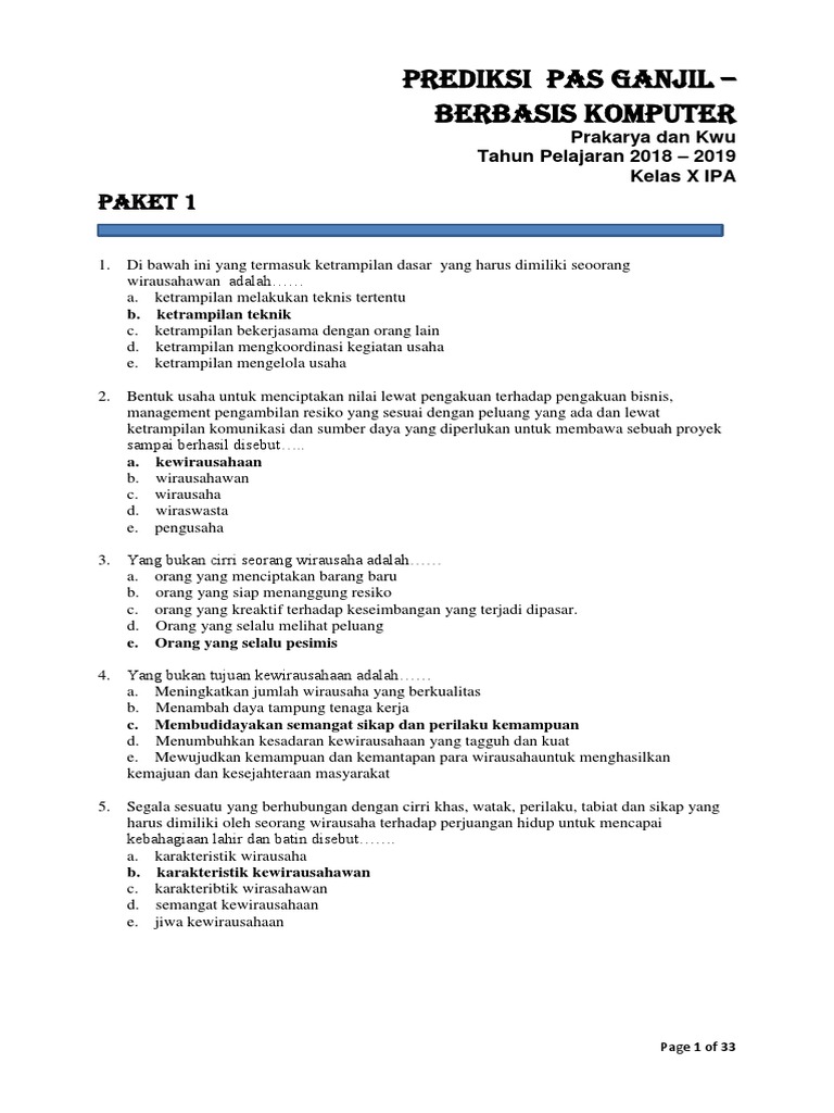 Kumpulan Predikasi Soal Pkwu Kelas X Ipa