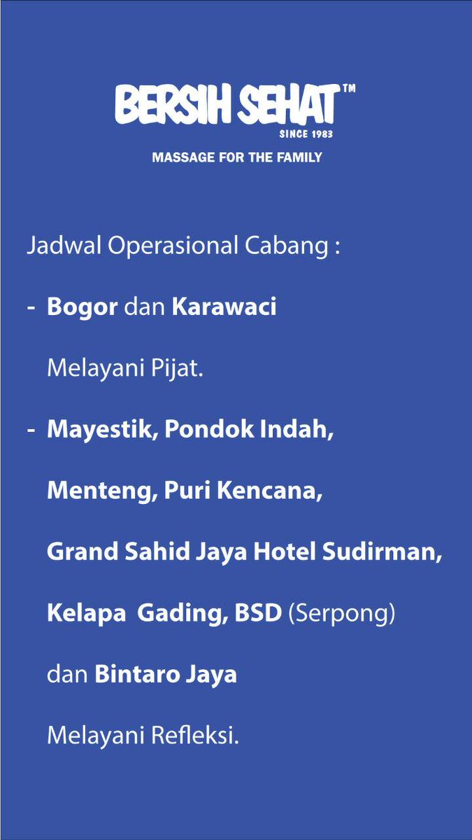 Bersih Sehat V Twitter Promo Penjualan Tiket Pijat Murah Bersih Sehat Mulai Tanggal 29 Februari 15 Maret 2010 Tersedia Di Semua Cabang Bersih Sehat Https T Co 5aqkogbvso